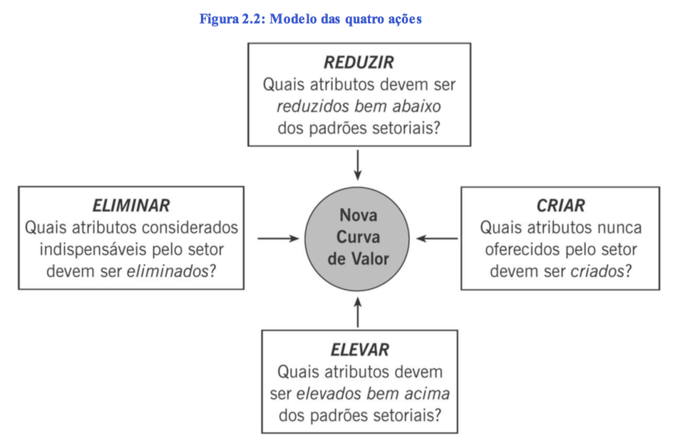 Decerto, para criar uma matriz de valor tangível, precisamos eliminar, reduzir, criar e elevar. Dessa maneira, para criar uma nova curva de valor é necessário: